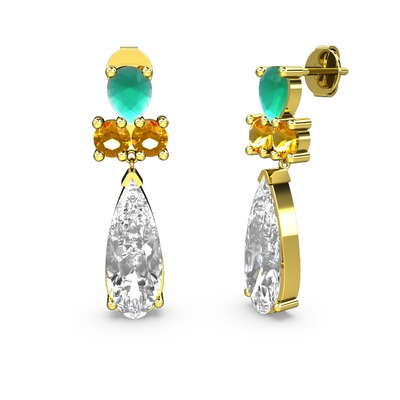 Beyaz zirkon, kök zümrüt ve sitrin 14 ayar altın küpe