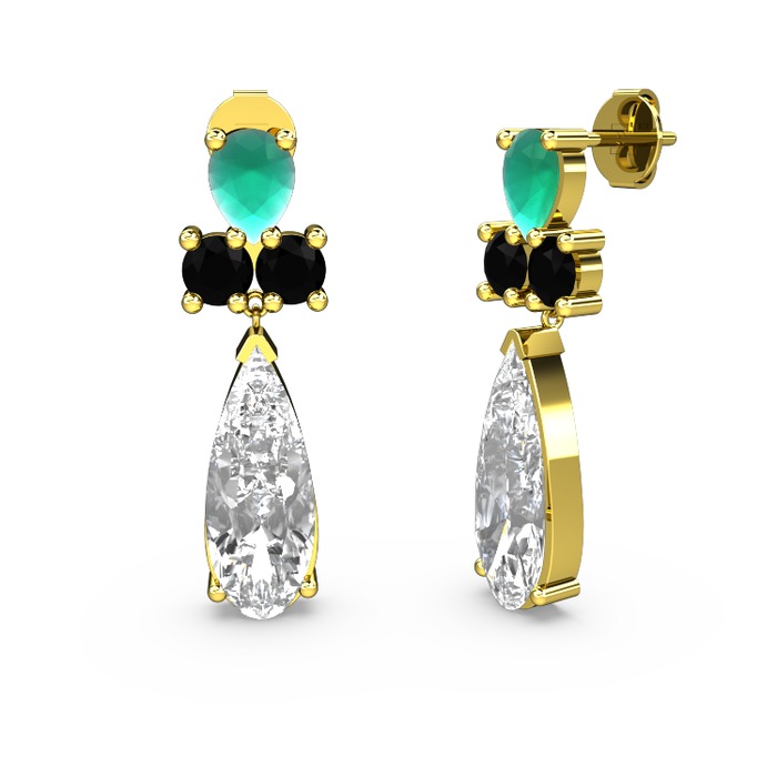 Beyaz zirkon, kök zümrüt ve siyah zirkon 925 ayar altın kaplama gümüş küpe