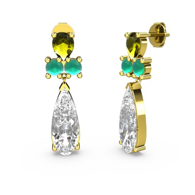 Beyaz zirkon, peridot ve kök zümrüt 925 ayar altın kaplama gümüş küpe