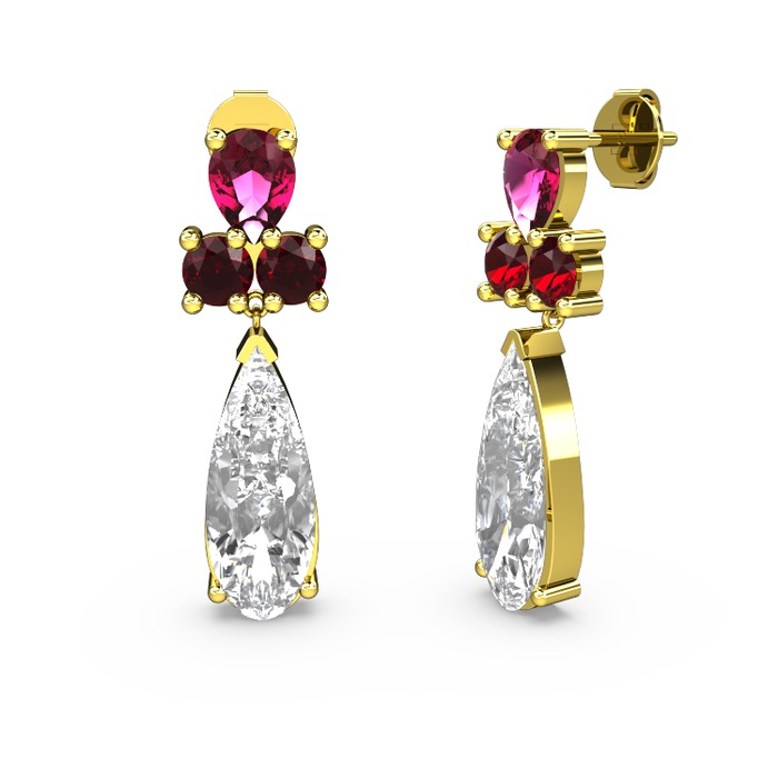 Beyaz zirkon, rodolit garnet ve garnet 925 ayar altın kaplama gümüş küpe