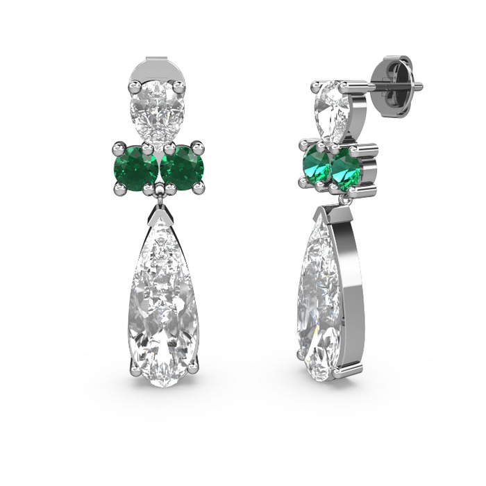 Beyaz zirkon, swarovski ve yeşil kuvars 14 ayar beyaz altın küpe