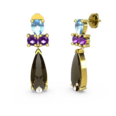 Dumanlı kuvars, akuamarin ve ametist 925 ayar altın kaplama gümüş küpe