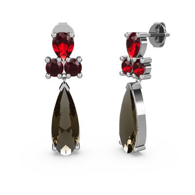 Dumanlı kuvars ve garnet 18 ayar beyaz altın küpe