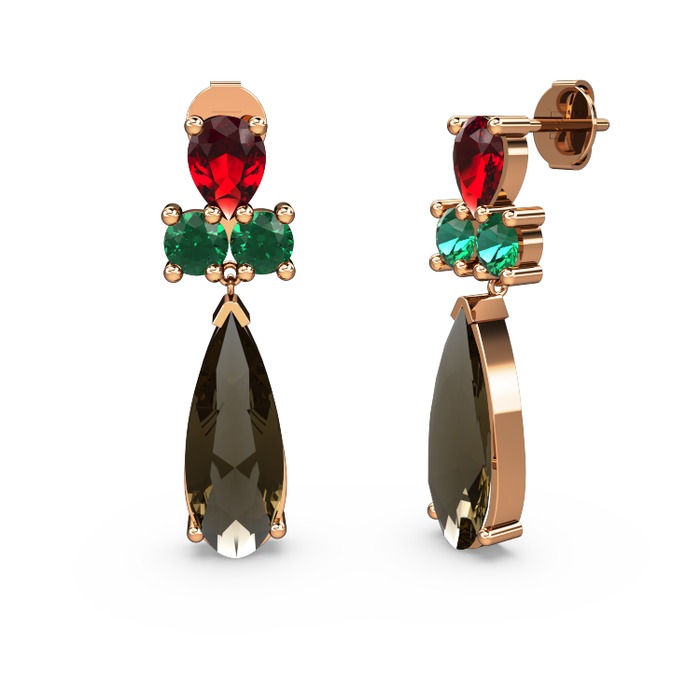 Dumanlı kuvars, garnet ve yeşil kuvars 8 ayar rose altın küpe