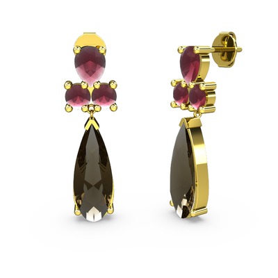 Dumanlı kuvars ve kök yakut 14 ayar altın küpe