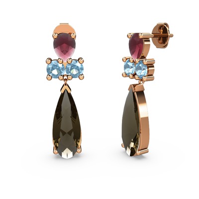 Dumanlı kuvars, kök yakut ve akuamarin 925 ayar rose altın kaplama gümüş küpe