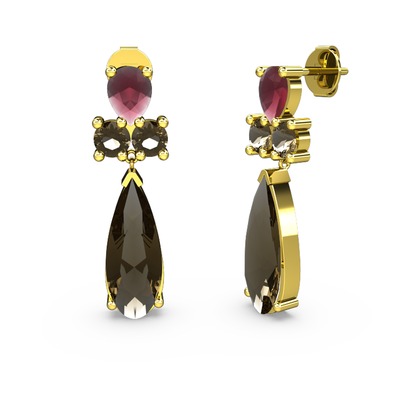 Dumanlı kuvars ve kök yakut 925 ayar altın kaplama gümüş küpe