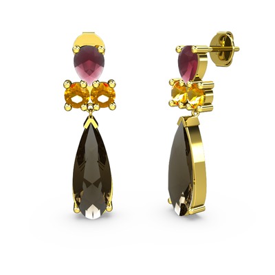 Dumanlı kuvars, kök yakut ve sitrin 925 ayar altın kaplama gümüş küpe