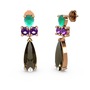 Dumanlı kuvars, kök zümrüt ve ametist 14 ayar rose altın küpe
