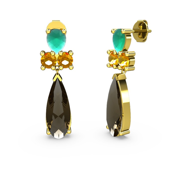 Dumanlı kuvars, kök zümrüt ve sitrin 925 ayar altın kaplama gümüş küpe