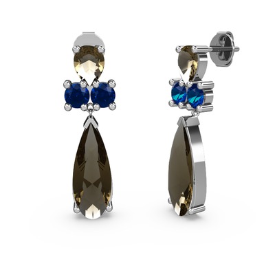 Dumanlı kuvars ve lab safir 18 ayar beyaz altın küpe