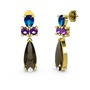 Dumanlı kuvars, lab safir ve ametist 925 ayar altın kaplama gümüş küpe