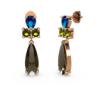 Dumanlı kuvars, lab safir ve peridot 14 ayar rose altın küpe