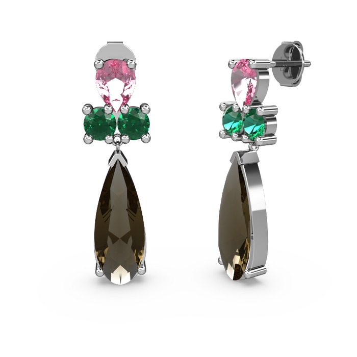 Dumanlı kuvars, pembe kuvars ve yeşil kuvars 18 ayar beyaz altın küpe