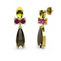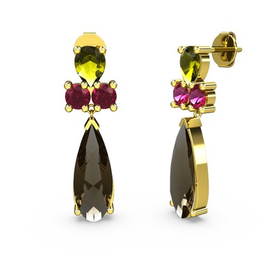 Dumanlı kuvars, peridot ve rodolit garnet 8 ayar altın küpe