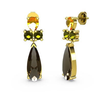 Dumanlı kuvars, sitrin ve peridot 18 ayar altın küpe