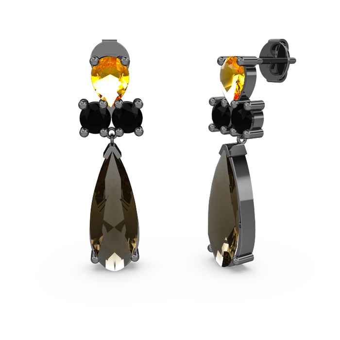 Dumanlı kuvars, sitrin ve siyah zirkon 925 ayar siyah rodyum kaplama gümüş küpe