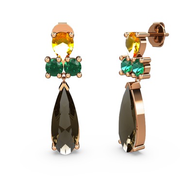 Dumanlı kuvars, sitrin ve yeşil kuvars 14 ayar rose altın küpe