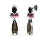 Dumanlı kuvars, siyah zirkon ve kök yakut 14 ayar beyaz altın küpe