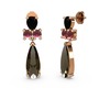 Dumanlı kuvars, siyah zirkon ve kök yakut 18 ayar rose altın küpe