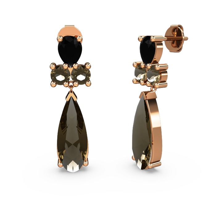 Dumanlı kuvars ve siyah zirkon 925 ayar rose altın kaplama gümüş küpe