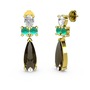 Dumanlı kuvars, swarovski ve kök zümrüt 18 ayar altın küpe
