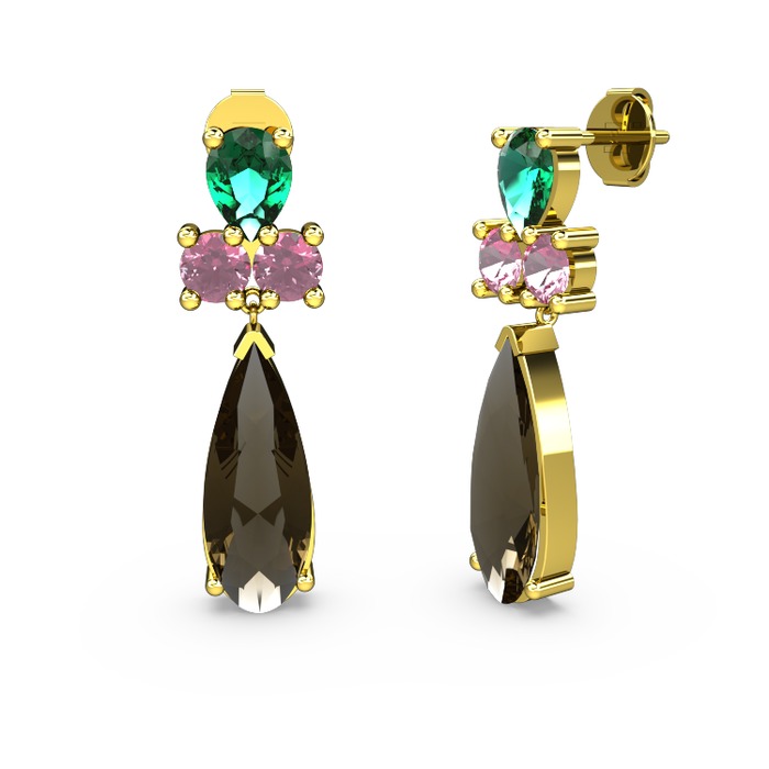 Dumanlı kuvars, yeşil kuvars ve pembe kuvars 18 ayar altın küpe