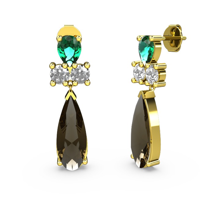 Dumanlı kuvars, yeşil kuvars ve swarovski 8 ayar altın küpe