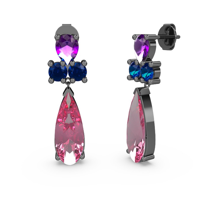 Pembe kuvars, ametist ve lab safir 925 ayar siyah rodyum kaplama gümüş küpe