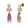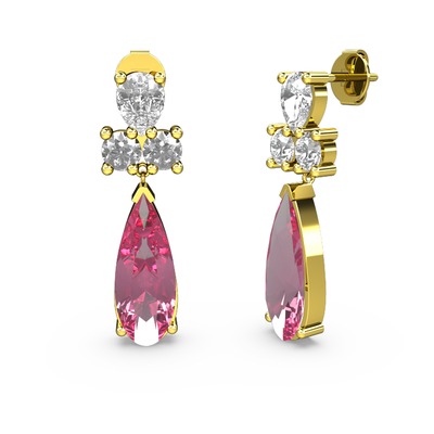 Pembe kuvars ve beyaz zirkon 14 ayar altın küpe