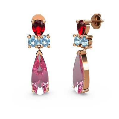 Pembe kuvars, garnet ve akuamarin 925 ayar rose altın kaplama gümüş küpe