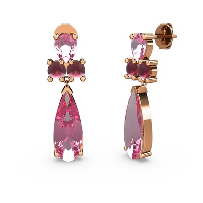 Pembe kuvars ve kök yakut 18 ayar rose altın küpe