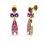 Pembe kuvars, kök yakut ve ametist 8 ayar altın küpe