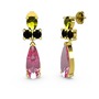 Pembe kuvars, peridot ve siyah zirkon 925 ayar altın kaplama gümüş küpe