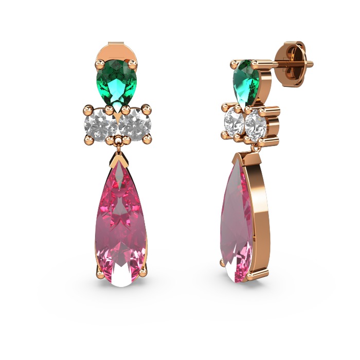 Pembe kuvars, yeşil kuvars ve swarovski 8 ayar rose altın küpe