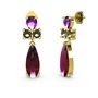 Rodolit garnet, ametist ve dumanlı kuvars 8 ayar altın küpe