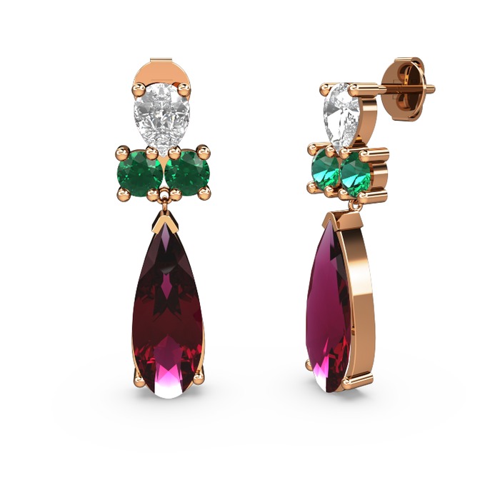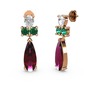 Rodolit garnet, beyaz zirkon ve yeşil kuvars 18 ayar rose altın küpe