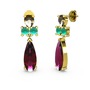 Rodolit garnet, dumanlı kuvars ve kök zümrüt 14 ayar altın küpe