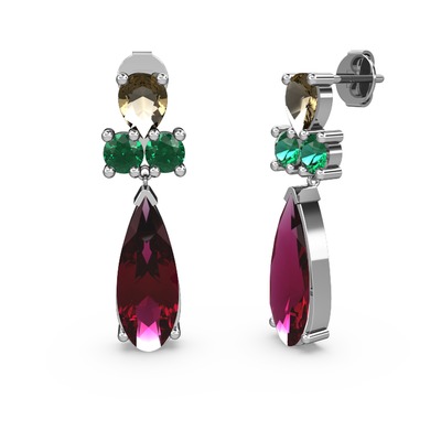 Rodolit garnet, dumanlı kuvars ve yeşil kuvars 925 ayar gümüş küpe