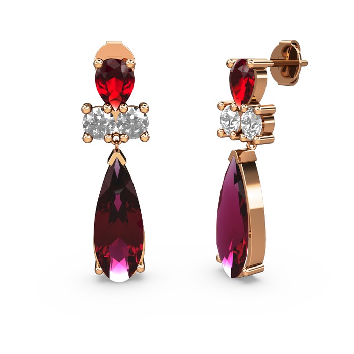 Rodolit garnet, garnet ve beyaz zirkon 8 ayar rose altın küpe