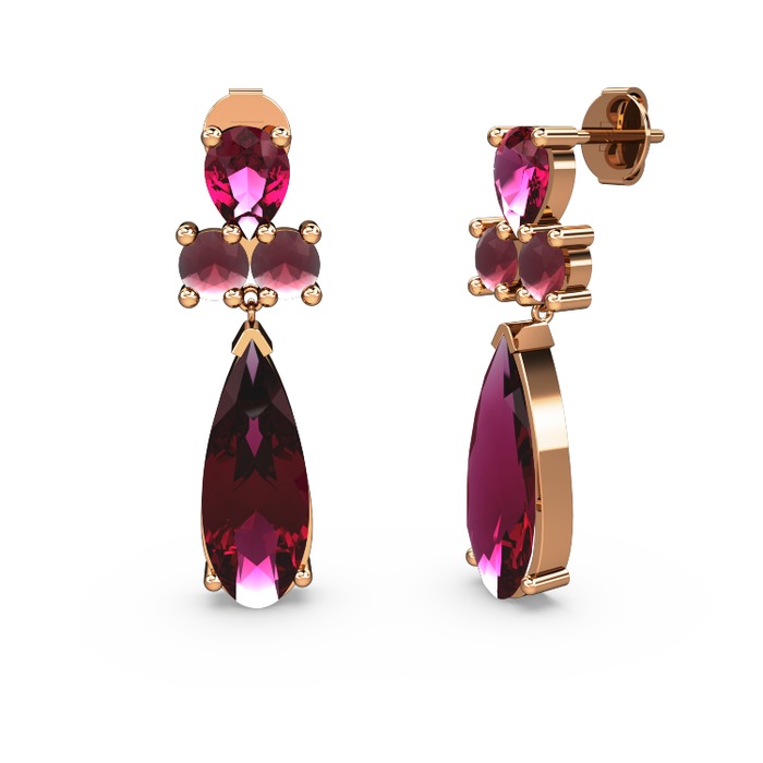 Rodolit garnet ve kök yakut 8 ayar rose altın küpe