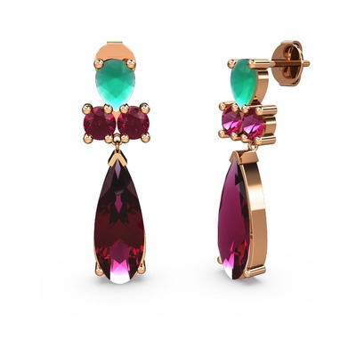 Rodolit garnet ve kök zümrüt 14 ayar rose altın küpe