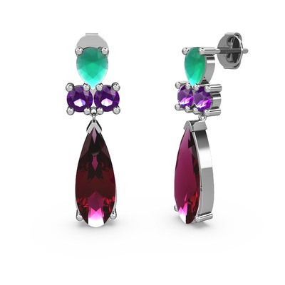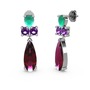 Rodolit garnet, kök zümrüt ve ametist 8 ayar beyaz altın küpe
