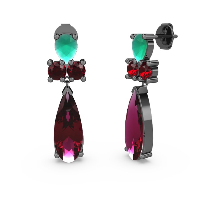 Rodolit garnet, kök zümrüt ve garnet 925 ayar siyah rodyum kaplama gümüş küpe