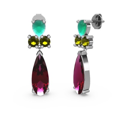 Rodolit garnet, kök zümrüt ve peridot 925 ayar gümüş küpe