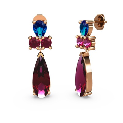 Rodolit garnet ve lab safir 14 ayar rose altın küpe