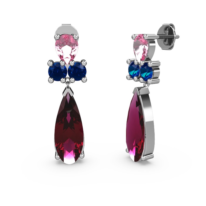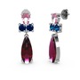 Rodolit garnet, pembe kuvars ve lab safir 8 ayar beyaz altın küpe