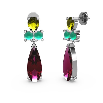 Rodolit garnet, peridot ve kök zümrüt 925 ayar gümüş küpe