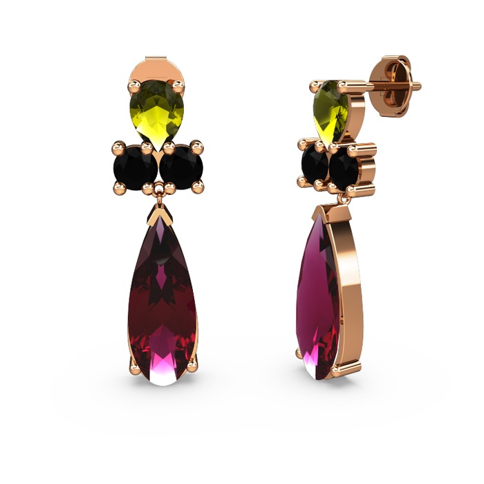 Rodolit garnet, peridot ve siyah zirkon 925 ayar rose altın kaplama gümüş küpe