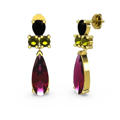 Rodolit garnet, siyah zirkon ve peridot 8 ayar altın küpe